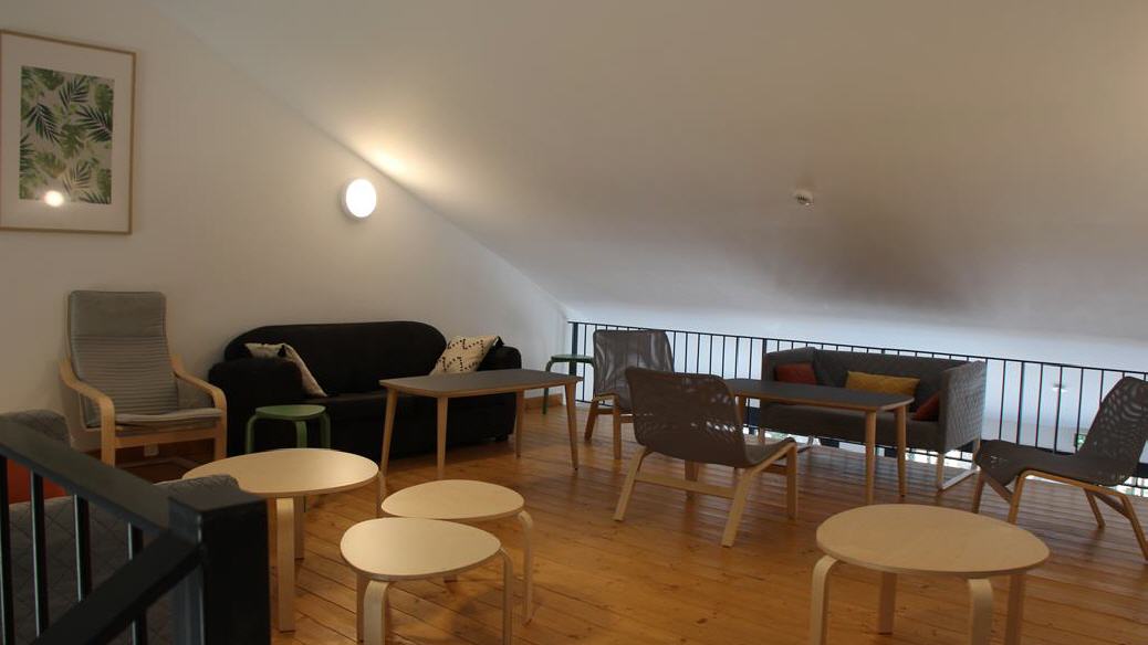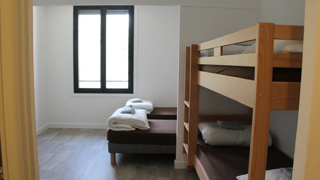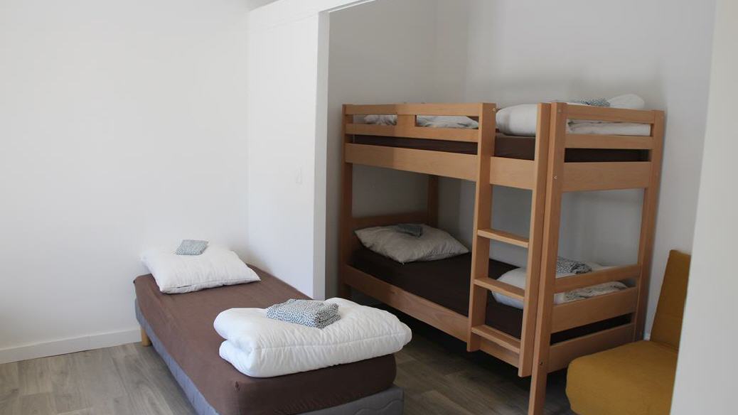 Schlafzimmer: Die Teilnehmer werden in insgesamt 12 Zimmern mit 2 bis 5 Betten (Einzel- und Doppelstockbetten) im Erdgeschoss und 1. OG untergebracht. In einigen Zimmern stehen zusätzlich Schlafsofas bereit. Alle Zimmer verfügen über ein eigenes Bad mit ebenerdiger Dusche und WC. Neben den 12 Schlafzimmern (25 Einzelbetten, 11 Etagenbetten und ausziehbare Schlafsofas) stehen den Gruppen ein großer Aufenthaltsraum und ein Speisesaal zur Verfügung, die mit einer Leseecke, einem Fernseher und Spielen ausgestattet sind.