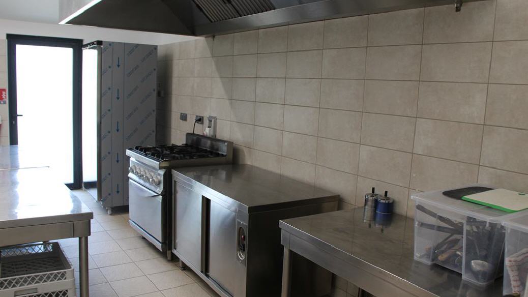 Die professionelle Küche ist komplett ausgestattet. Unseren Selbstversorgergruppen stehen hochwertige Geräte für die Zubereitung der Mahlzeiten zur Verfügung – wie z.B. zwei große Kühlschränke, ein Gefrierschrank, ein Geschirrspüler, ein Gasherd, ein Backofen und vieles mehr. Alle Küchenutensilien in angemessener Größe sind hier vorhanden.