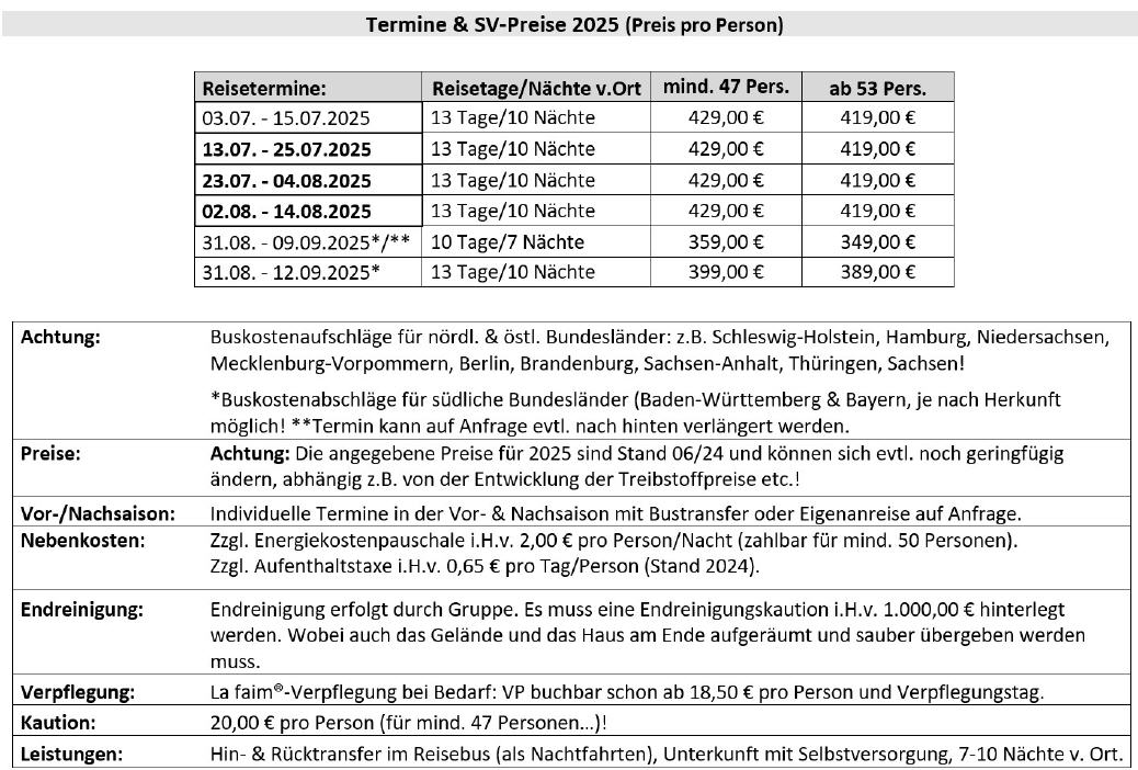Aufgrund unserer Gruppengrößen sowie verschiedene Erfahrungen in den letzten Jahren sind wir in der Lage optimale Verpflegungspakete mit qualifizierten Köchen zu attraktiven Preisen anbieten zu können. Fragen Sie uns einfach danach...
