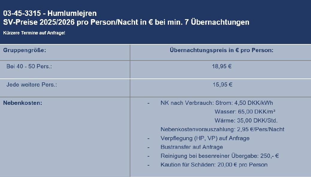 Das Gruppenhaus Humlum Strand liegt in Dänemark, in Nordjütland, ca 6 km nördlich von Struer entfernt direkt am Wasser. Von Humlum Lejren aus hat man eine tolle Sicht auf die Insel Venø. Das Wassergebiet zwischen der Insel Venø und Humlum Lejren wird Venø Sund genannt. Die nächstgrößeren Orte sind Lemvig (20 Km), Skive (45 Km), Holstebro (23 Km) und Nykøbing M. (72 Km). Wer die schönen Nordseestrände besuchen möchte, findet in Blokhus (139 Km) einen wunderschönen breiten Sandstrand.