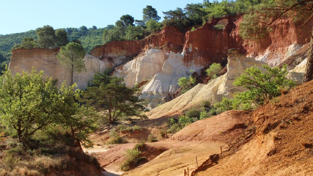 An einem schönen Tag sollte unbedingt das Colorado Provençal in Rustrel (14 km) und/oder der Ockerpfad von Roussillon (12 km) auf dem Programm stehen. Die Farben der unterschiedlichen Gesteinsschichten sind unvergesslich.