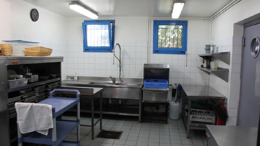 Bei der Küche handelt es sich um eine sehr gut eingerichtete Gewerbeküche ausgestattet u.a. mit Gasherd, Konvektomat, große Kühl- & Gefrierschrank, Geschirrspülmaschine etc. Bei Vollbelegung wird den Gruppen auch noch ein neben der Küche liegender Kühlraum zur Verfügung gestellt.